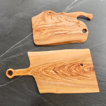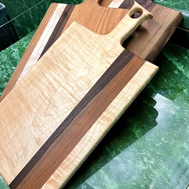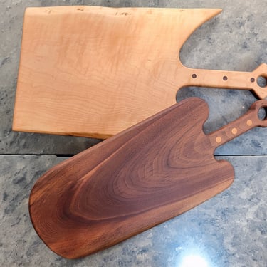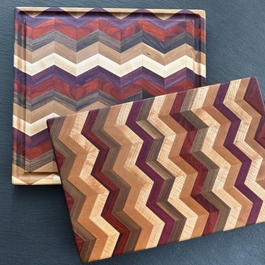 Each cutting board and charcuterie board pictured in the gallery below is hand crafted in Joe's wood shop with artistry, precision, skill and care, making each piece truly one of a kind. If you look closely, you might even just spot a handmade X-wing fighter jet from Star Wars!